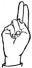 На ћирилици написано СИМОН ПЛОЧИЋ састоји се из 11 слова [?]. Исписано ћириличном једноручном азбуком за глувонеме: